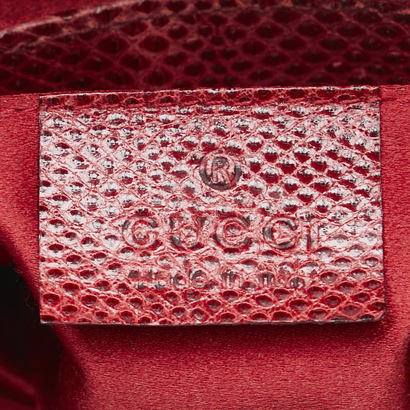 グッチ インターロッキングG ミニ ハンドバッグ レッド サテン レザー レディース GUCCI 【中古】
