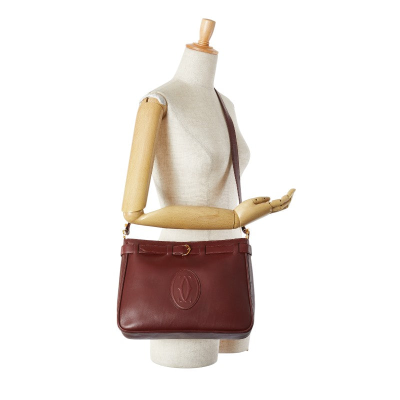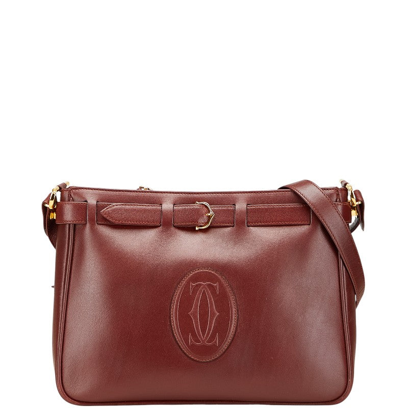 カルティエ マストライン 斜め掛け ショルダーバッグ ワインレッド ボルドー レザー レディース CARTIER 【中古】