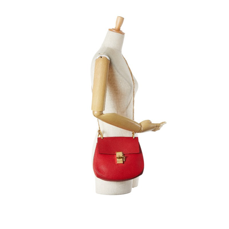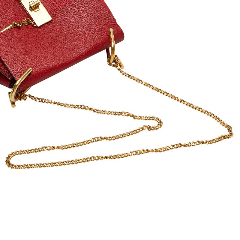 クロエ ドリュー 斜め掛け チェーン ショルダーバッグ レッド レザー レディース Chloe 【中古】
