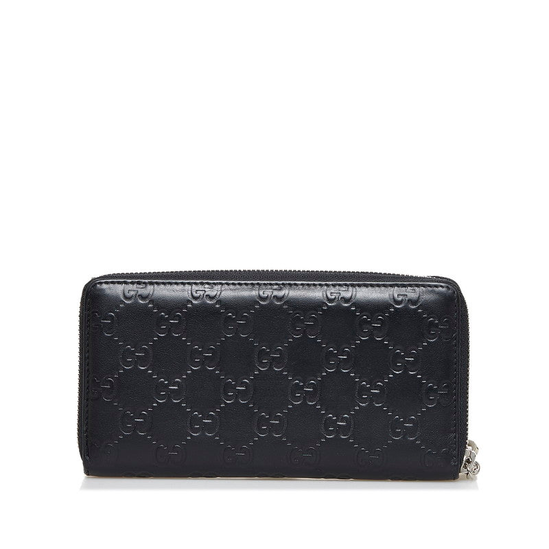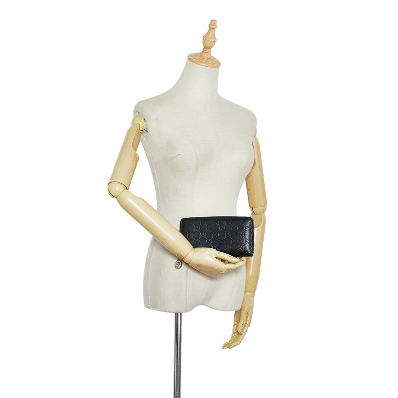 グッチ グッチシマ GGチャーム ラウンドファスナー 長財布 233025 ブラック レザー レディース GUCCI 【中古】