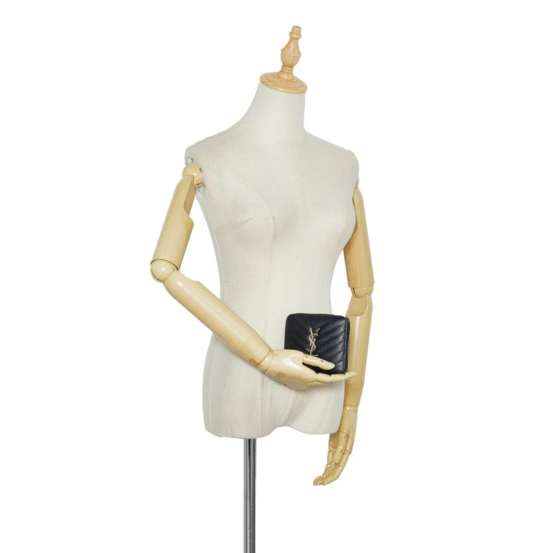 サンローラン YSLロゴ キルティング 二つ折り財布 ブラック レザー レディース SAINT LAURENT 【中古】