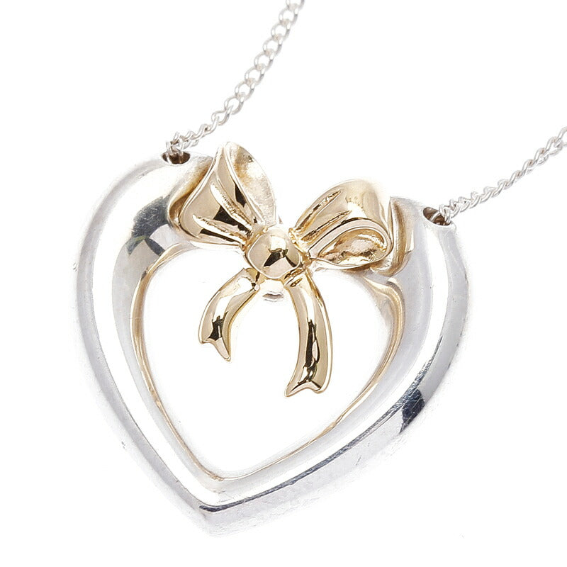 ティファニー シルバー925 K18YG イエローゴールド コンビ コンビ ハートリボン ネックレス レディース TIFFANY&Co. 中古