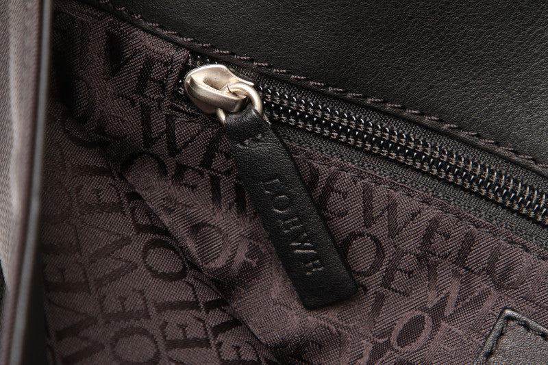 ロエベ ブラック キャンバス レザー ショルダーバッグ レディース LOEWE 中古