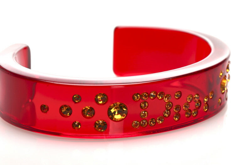 クリスチャンディオール レッド プラスチック ラインストーン バングル レディース Christian Dior 中古