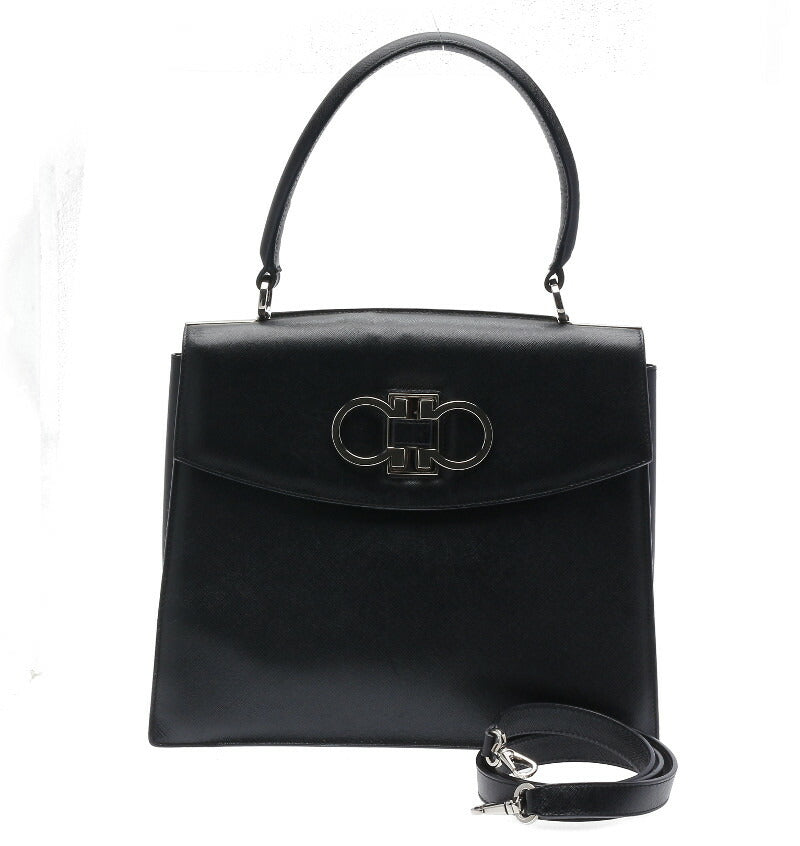 ガンチーニ AF-21 4829 ブラック レザー ハンドバッグ レディース 中古