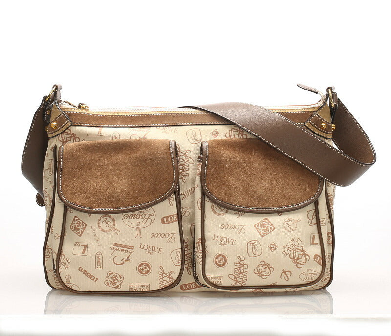 ロエベ 160周年 ブラウン キャンバス レザー 肩掛け ショルダーバッグ レディース LOEWE 中古