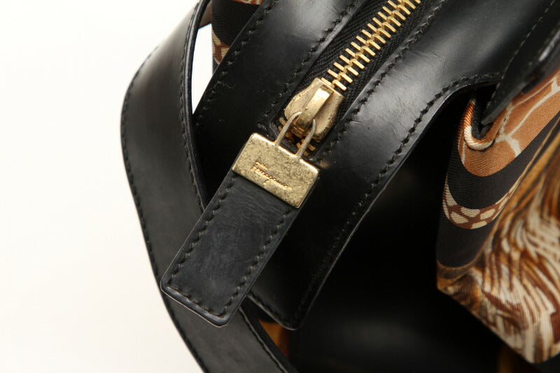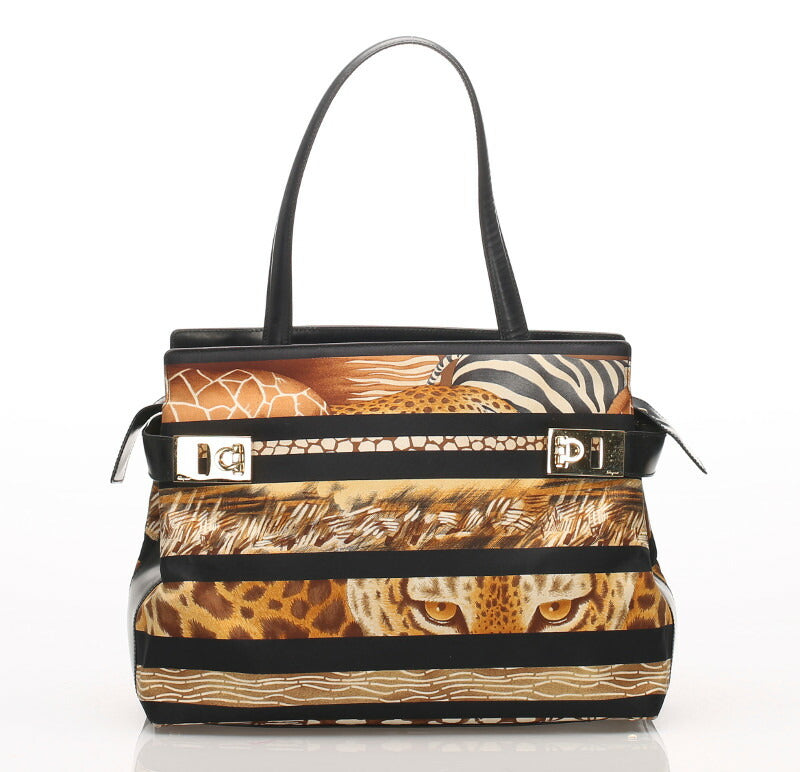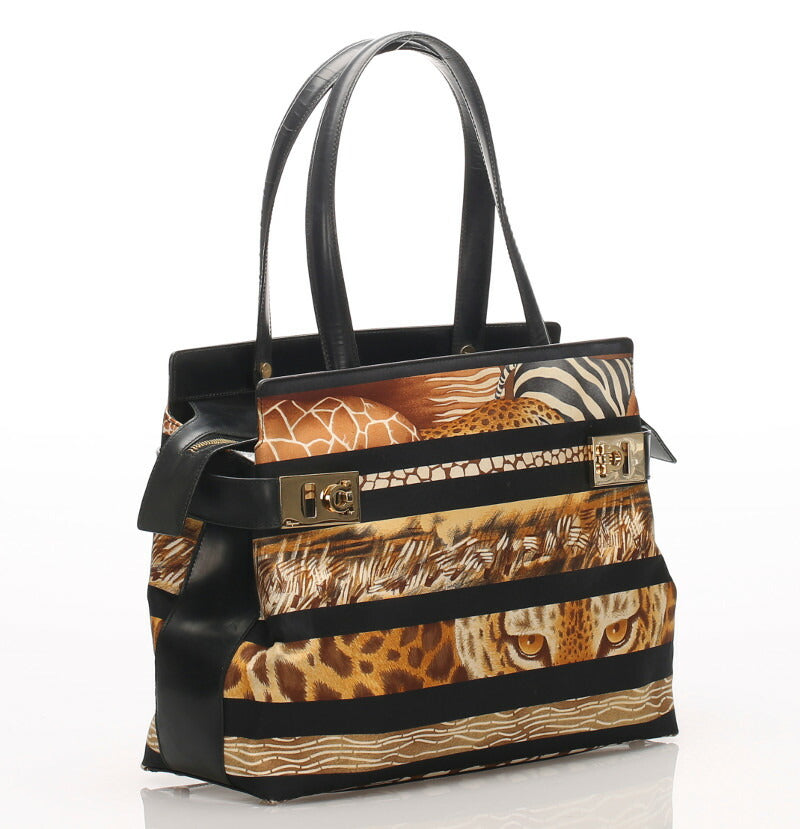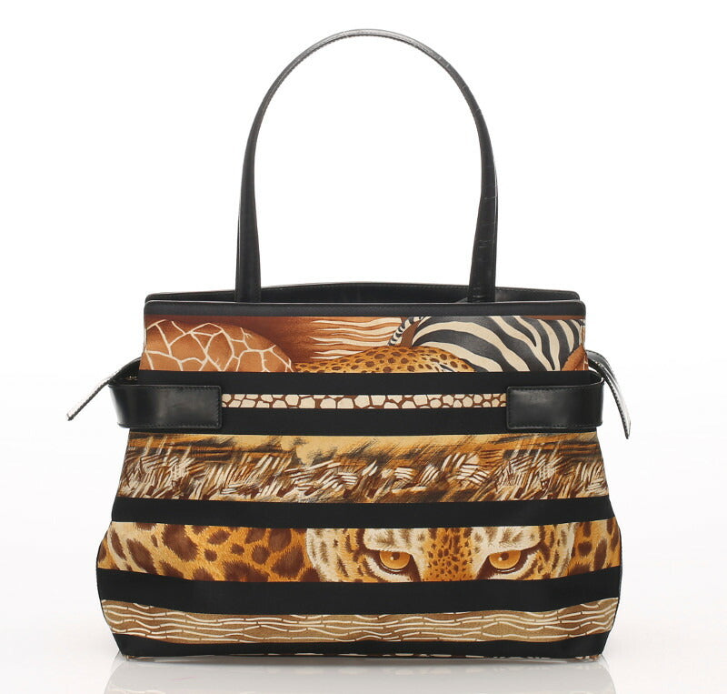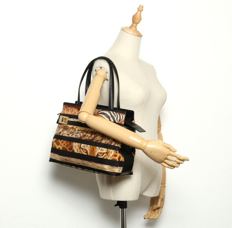 ガンチーニ アニマル DY-21 1319 ブラウン ナイロン レザー トートバッグ レディース 中古