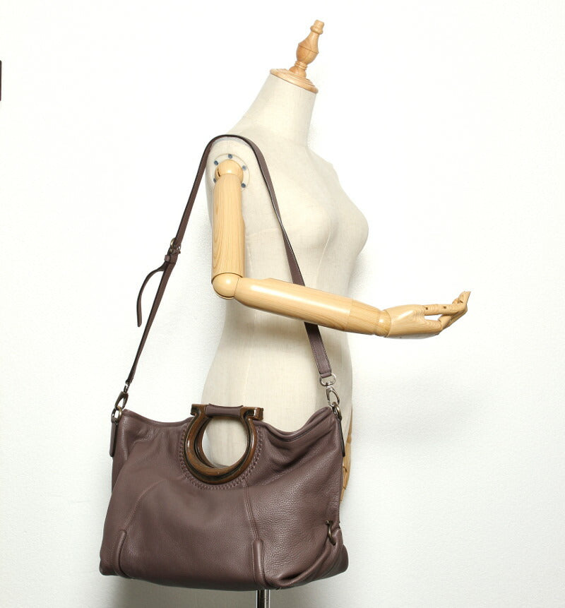 サルヴァトーレフェラガモ ガンチーニ AU-21 B841 パープル レザー ハンドバッグ ショルダーバッグ 2WAY レディース Salvatore Ferragamo 中古