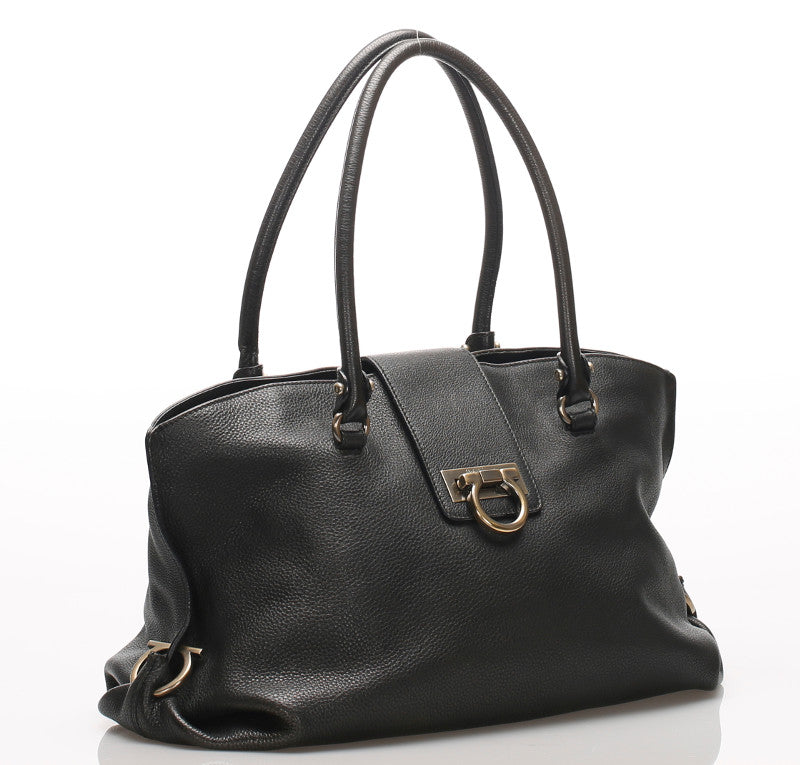ガンチーニ AU-21 B182 ブラック レザー ショルダーバッグ レディース 中古