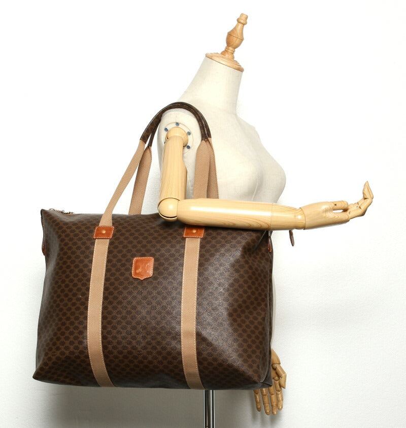 セリーヌ マカダム ブラウン PVC レザー トートバッグ レディース CELINE 中古