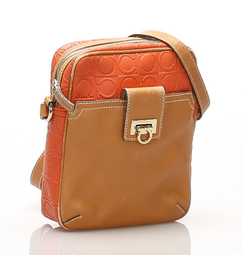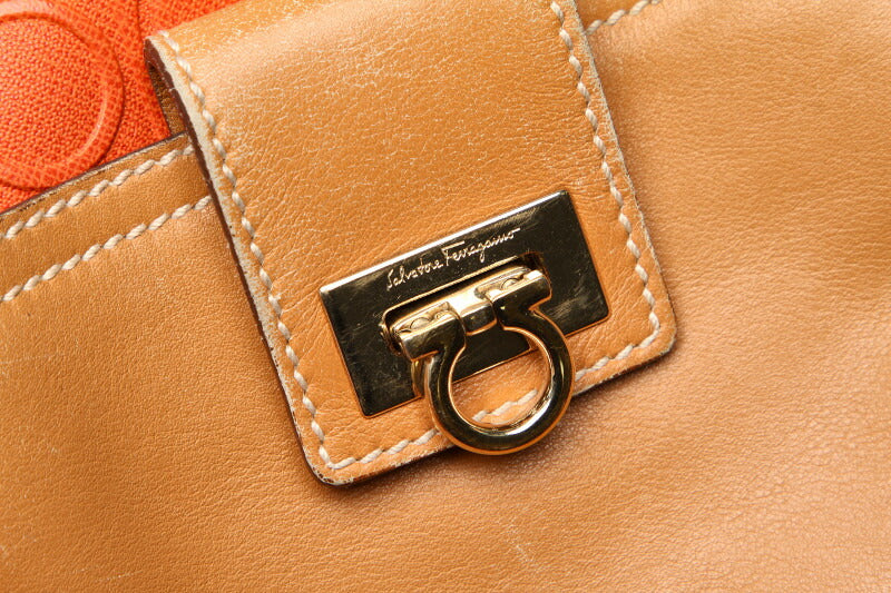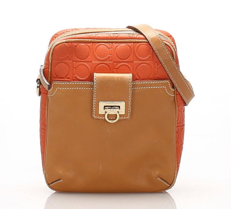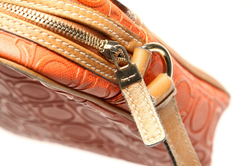 ガンチーニ AF-21 4914 ブラウン オレンジ PVC レザー ショルダーバッグ レディース 中古