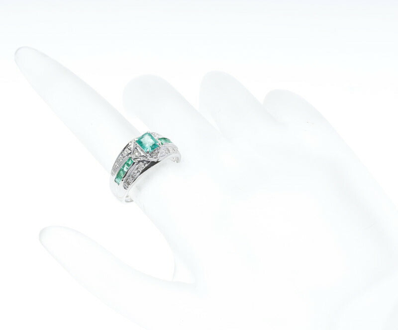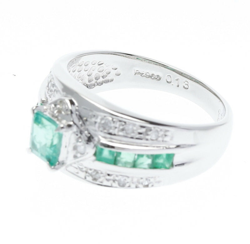 Pt900 プラチナ エメラルド0.40ct&0.48 ダイヤ0.13ct リング 指輪 レディース 12号 中古