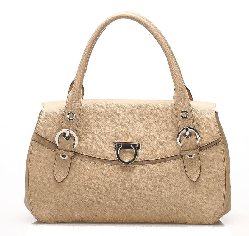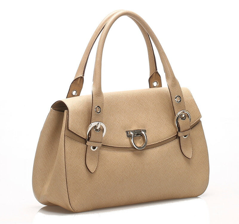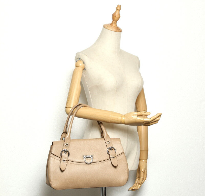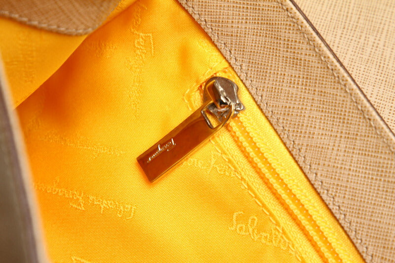 ガンチーニ サフィアーノ AB-21 5322 ベージュ レザー ハンドバッグ レディース 中古
