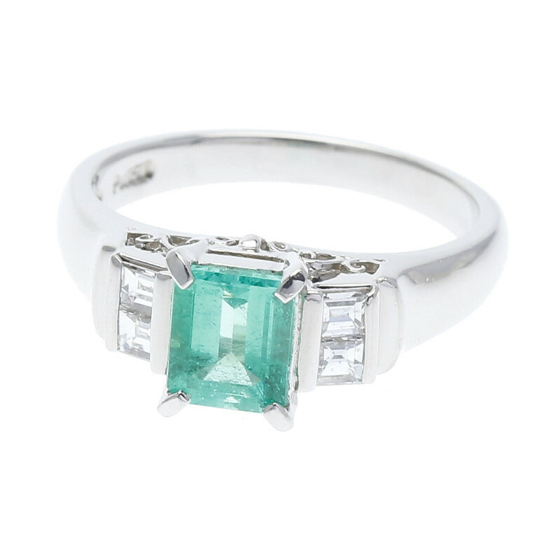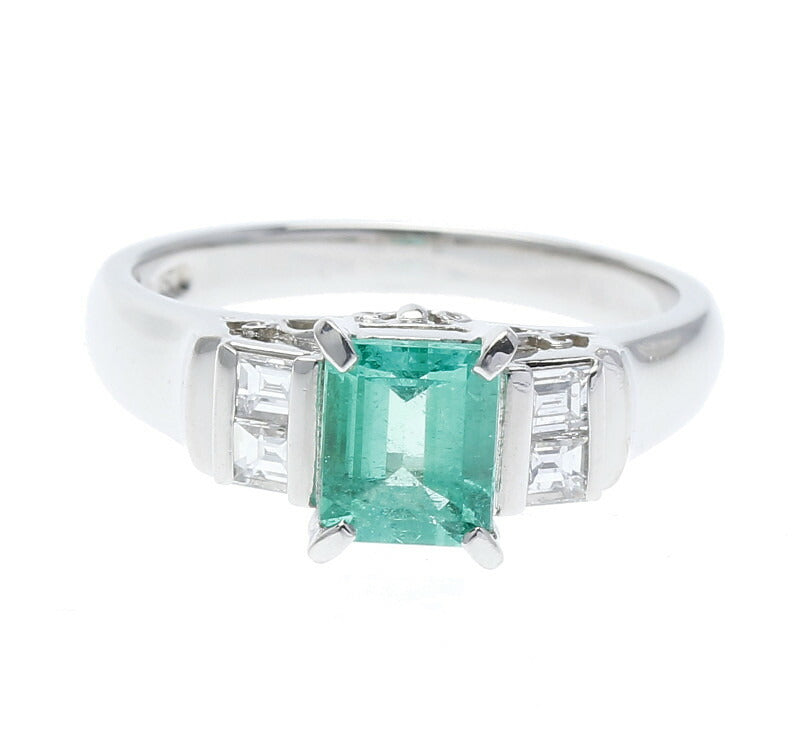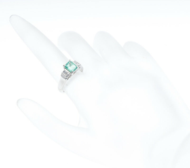 Pt900 プラチナ エメラルド0.69ct ダイヤ0.22ct リング 指輪 レディース 10.5号 中古