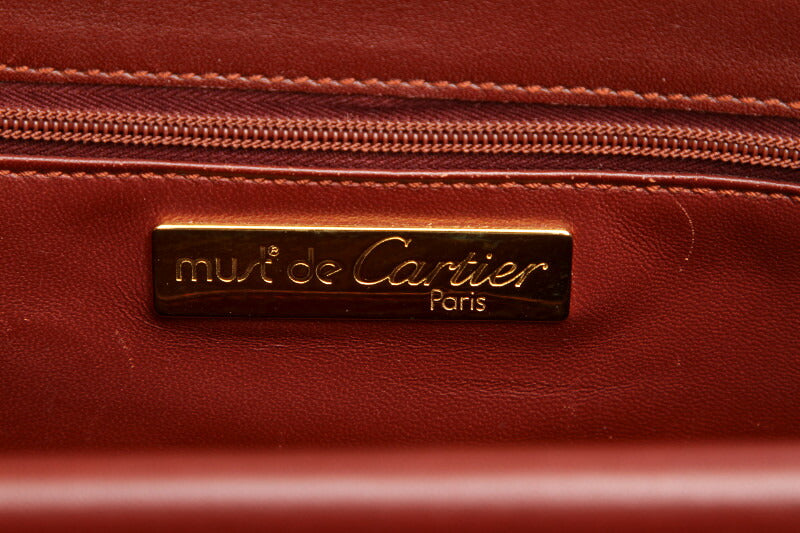 カルティエ マスト ボルドー レザー ショルダーバッグ レディース CARTIER 中古