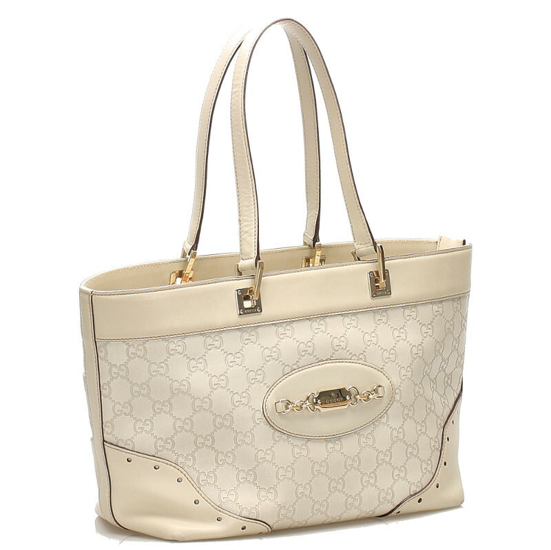 グッチ グッチシマ 145998 アイボリー レザー トートバッグ レディース GUCCI 中古