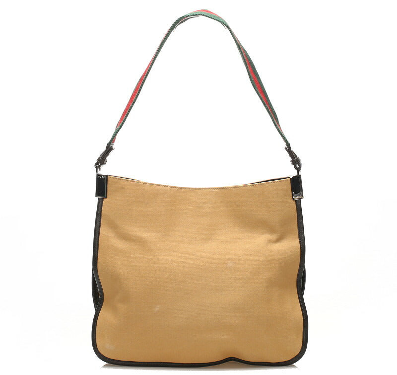 グッチ シェリーライン ウェビングライン 001 4321 ベージュ ブラウン キャンバス レザー ショルダーバッグ レディース GUCCI 中古