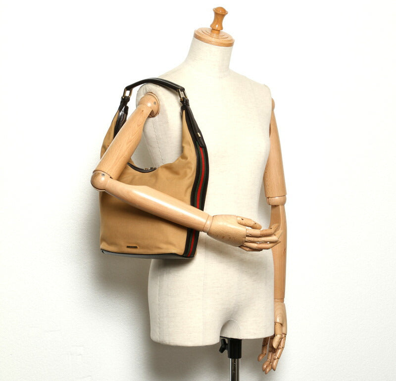 グッチ シェリー 2404 ベージュ キャンバス レザー ショルダーバッグ レディース GUCCI 中古
