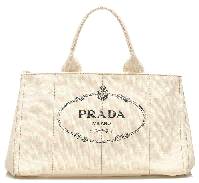 プラダ カナパ ホワイト ブラック キャンバス ハンドバッグ レディース PRADA 中古