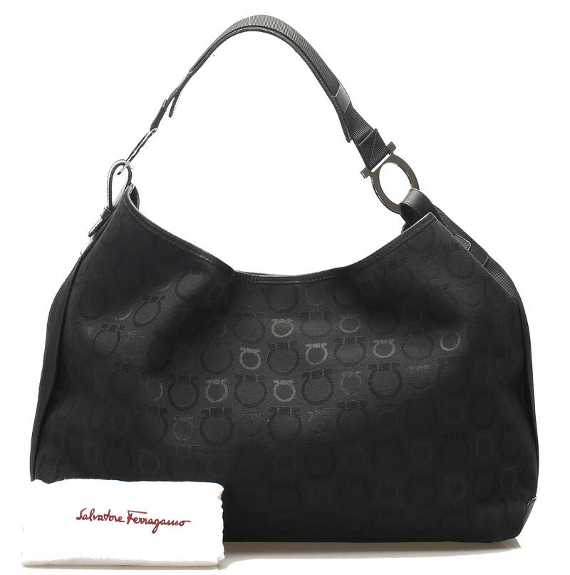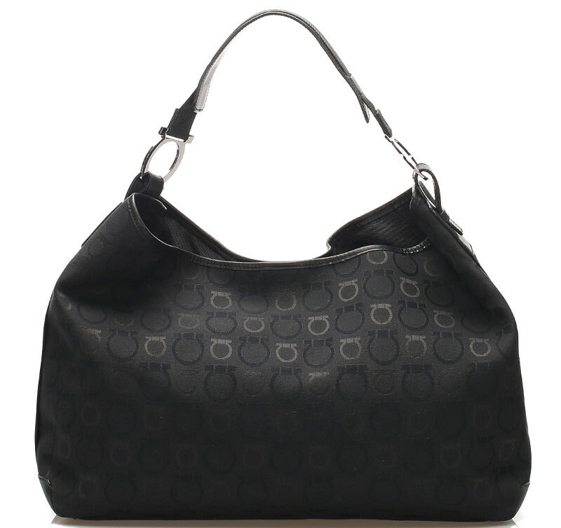 サルヴァトーレフェラガモ ガンチーニ EX-21 5378 ブラック 黒 キャンバス レザー ショルダーバッグ レディース Salvatore Ferragamo 中古