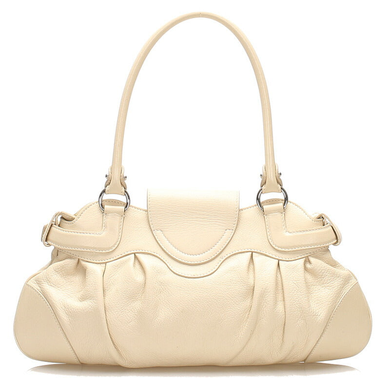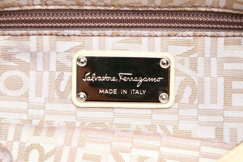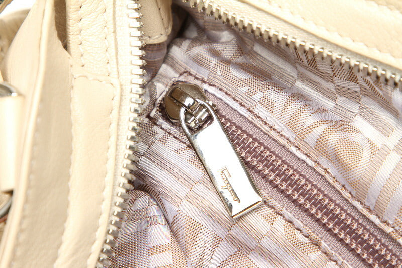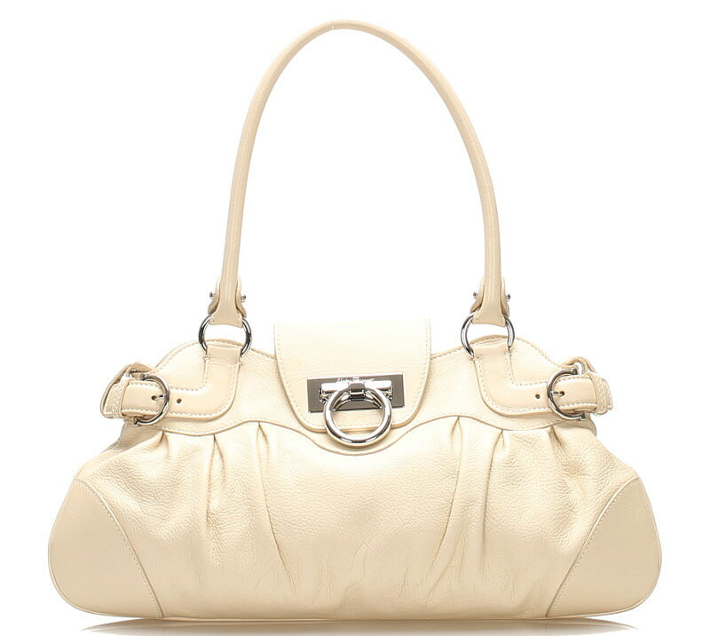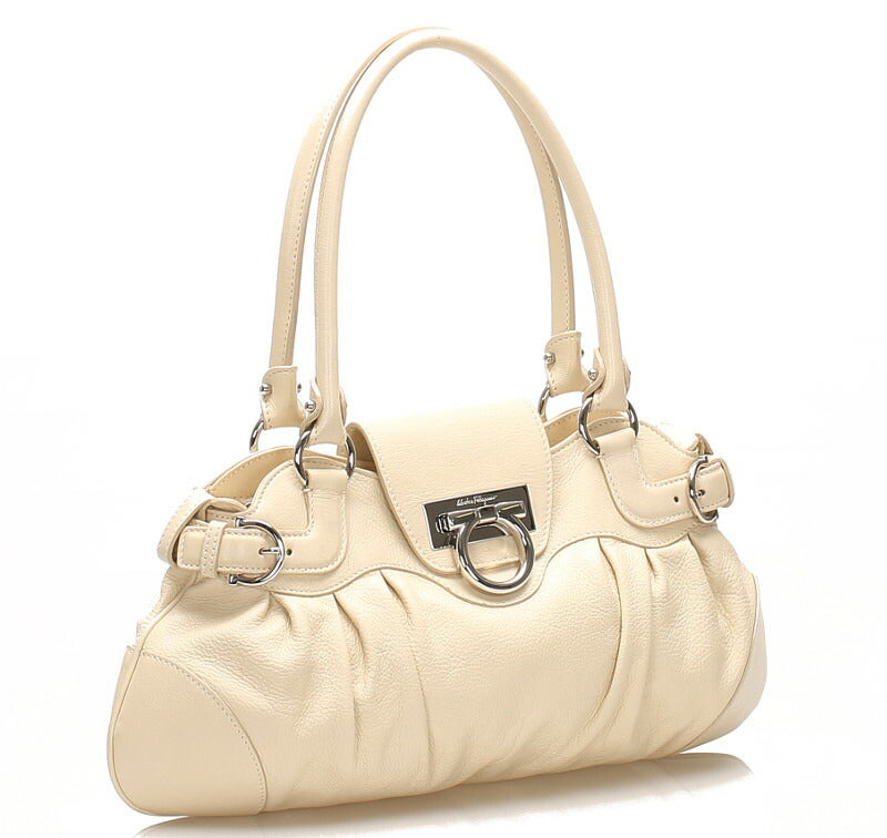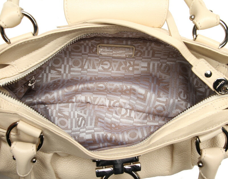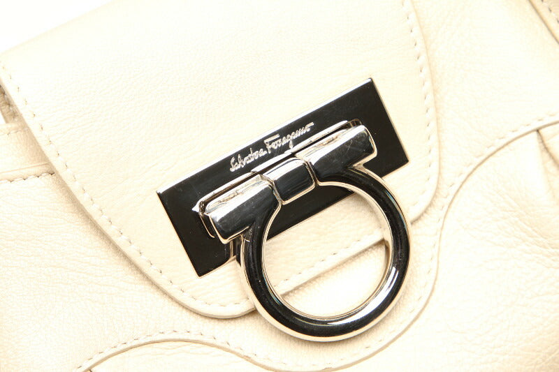 ガンチーニ AU-21 6317 クリーム ホワイト レザー ハンドバッグ レディース 中古