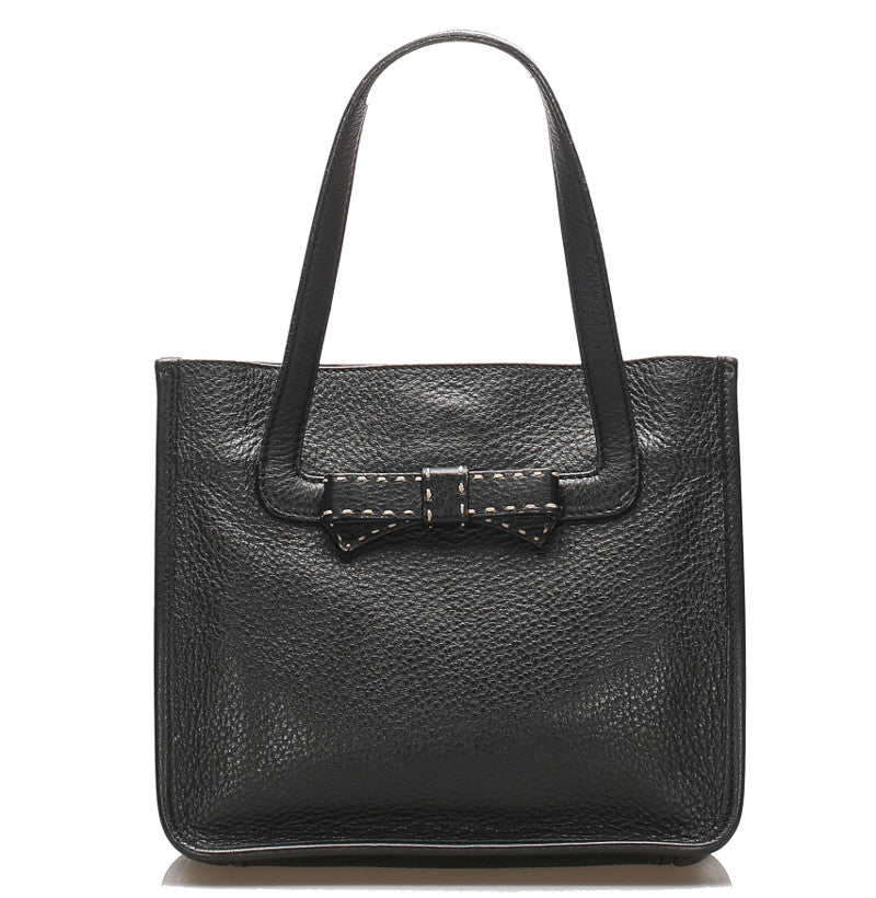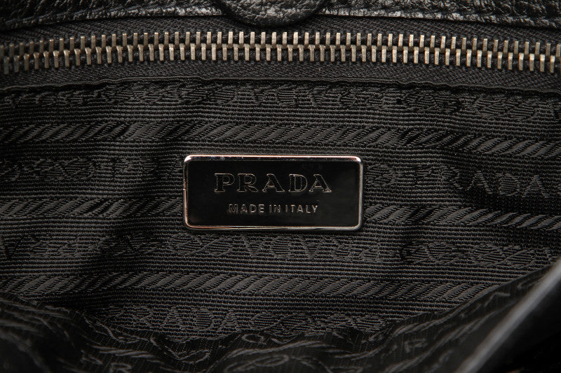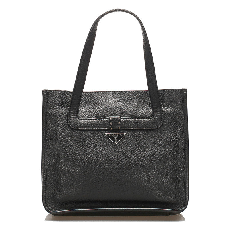 プラダ リボン ブラック 黒 レザー トートバッグ レディース PRADA 中古