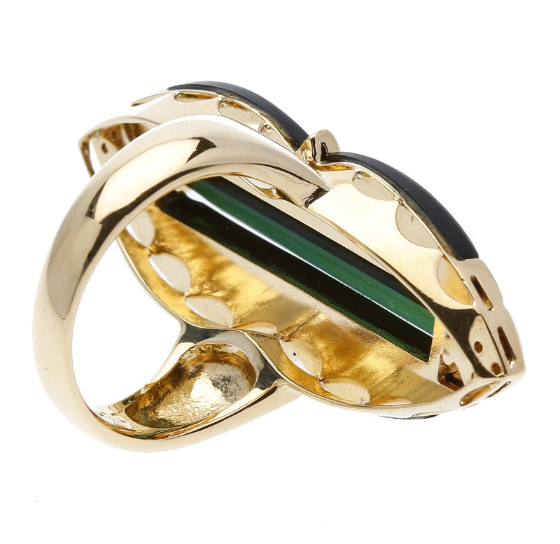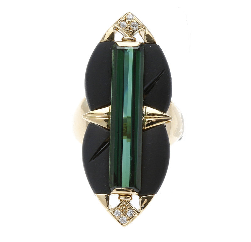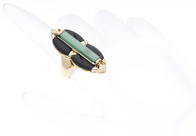 K18イエローゴールド トルマリン5.02ct ダイヤ0.06ct オニキス リング 指輪 12号 中古