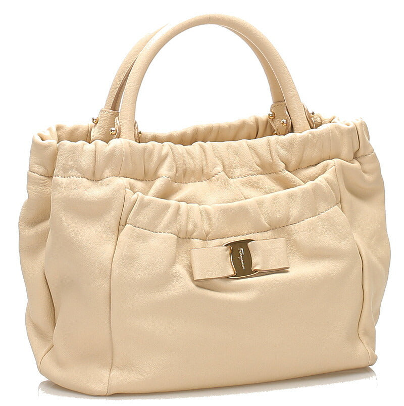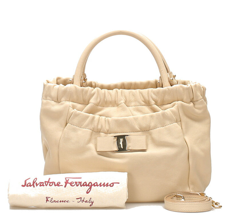 サルヴァトーレフェラガモ ヴァラリボン GG-21 C793 ベージュ レザー ハンドバッグ ショルダーバッグ 2WAY レディース Salvatore Ferragamo 中古
