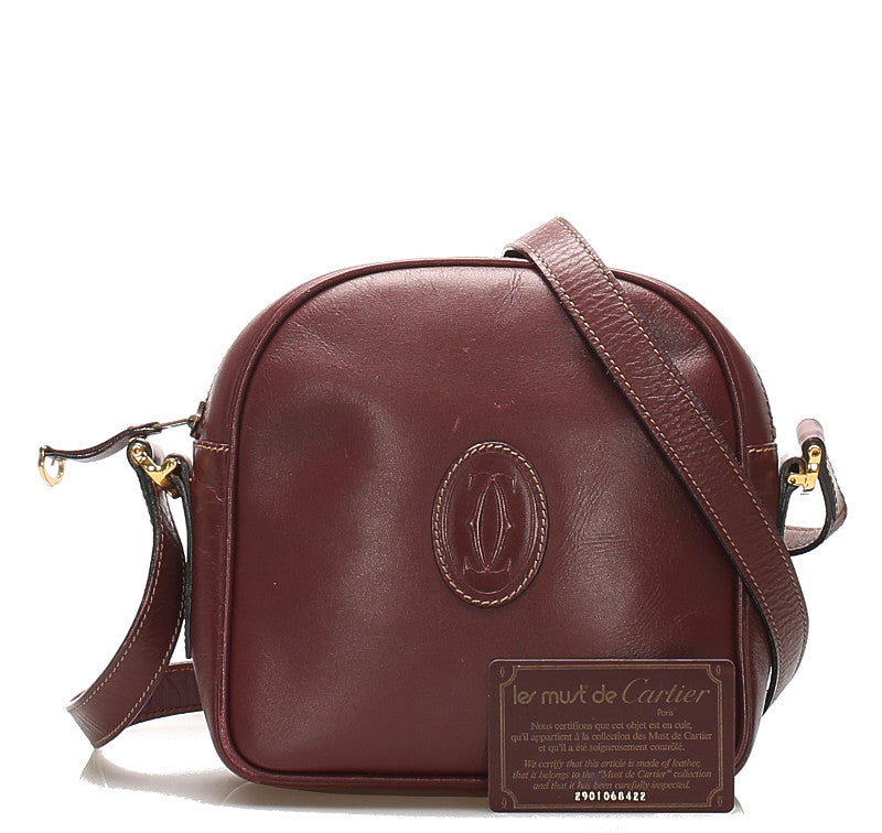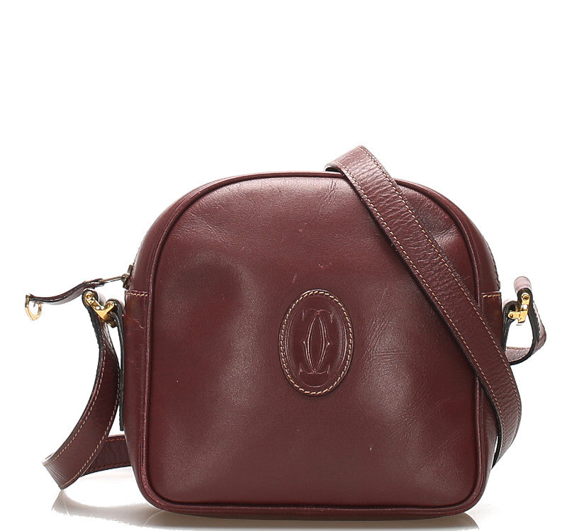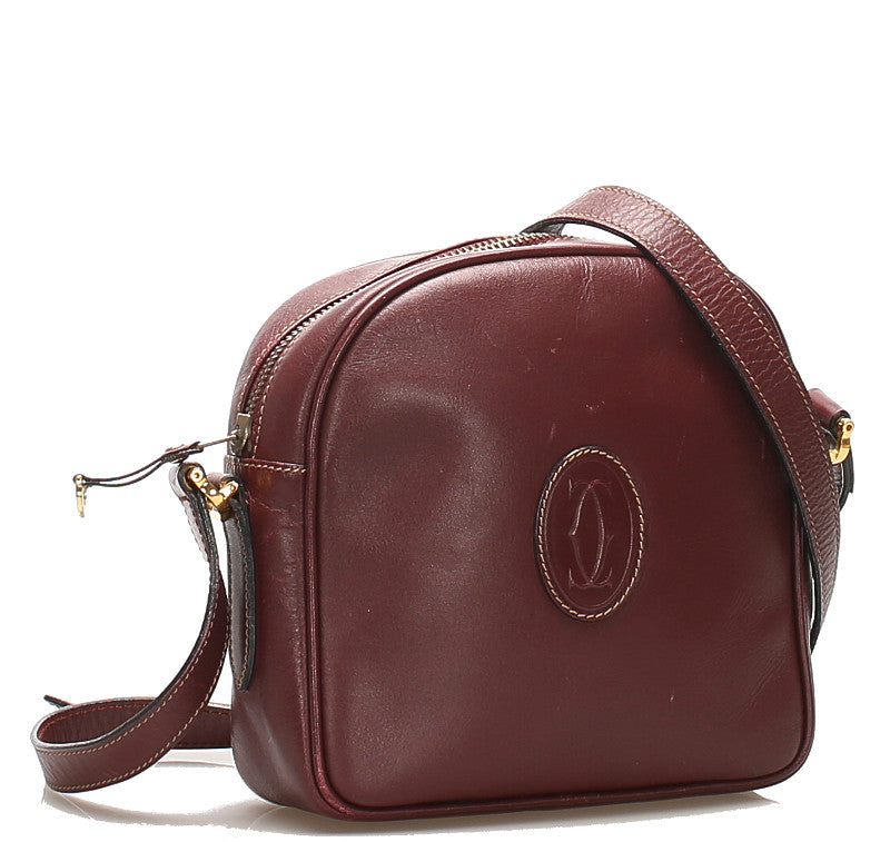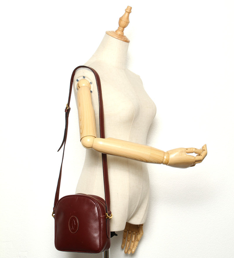 カルティエ ワインレッド レザー ショルダーバッグ レディース CARTIER 中古