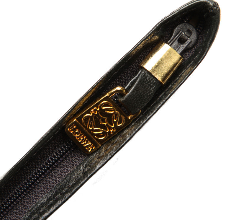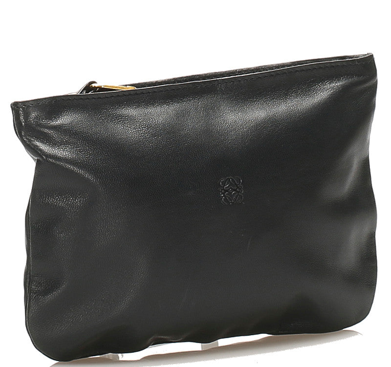 ロエベ アナグラム ブラック 黒 レザー ポーチ ユニセックス LOEWE 中古