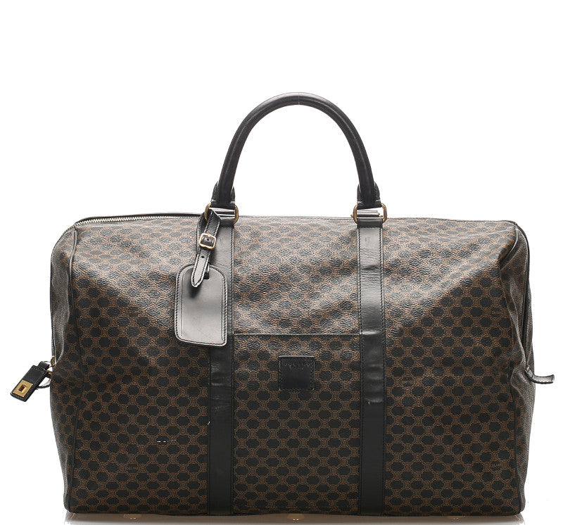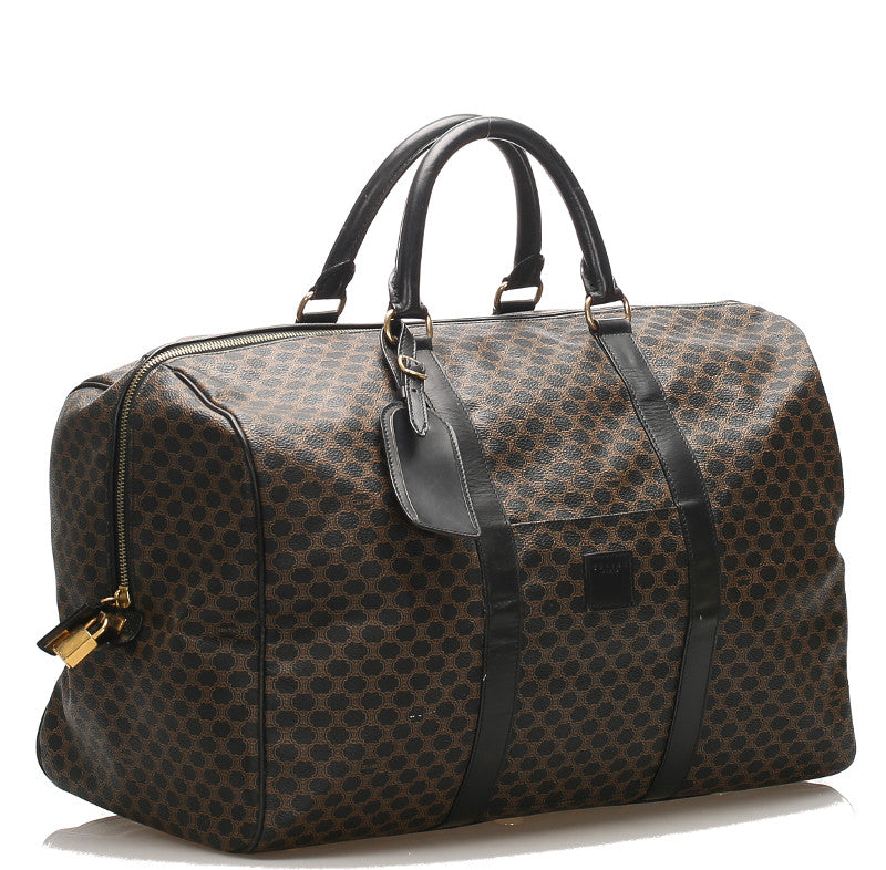 セリーヌ マカダム柄 ブラウン 茶 PVC レザー ボストンバッグ レディース CELINE 中古