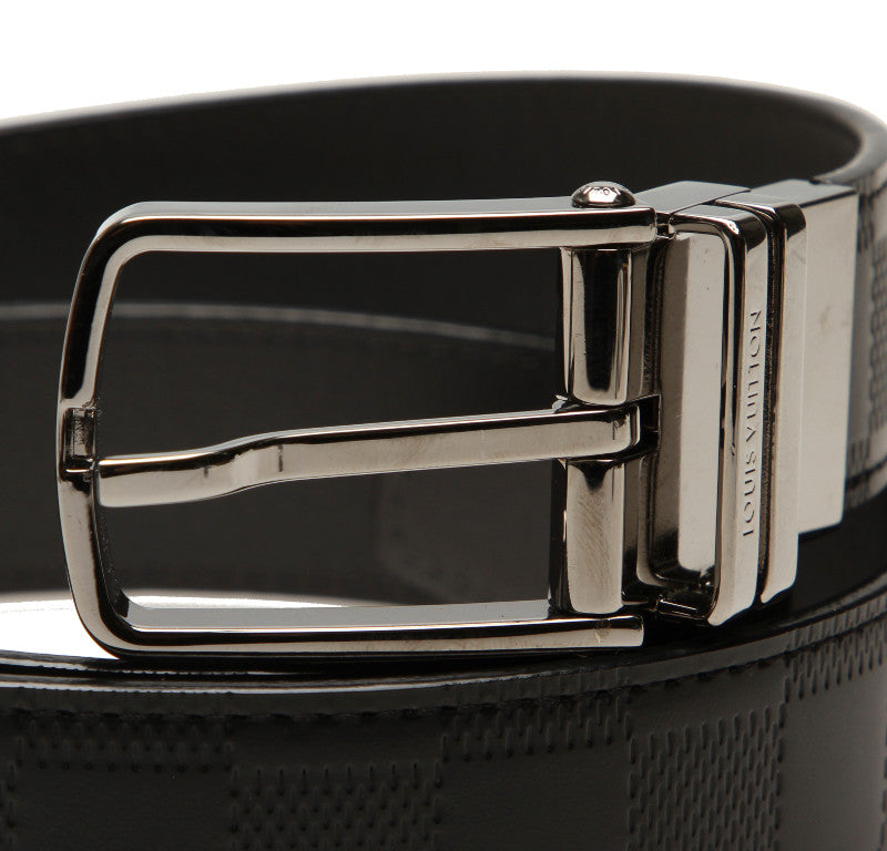 ルイ ヴィトン ダミエ アンフィニ サンチュールボストン M9788 ブラック 黒 レザー ベルト メンズ LOUIS VUITTON 中古