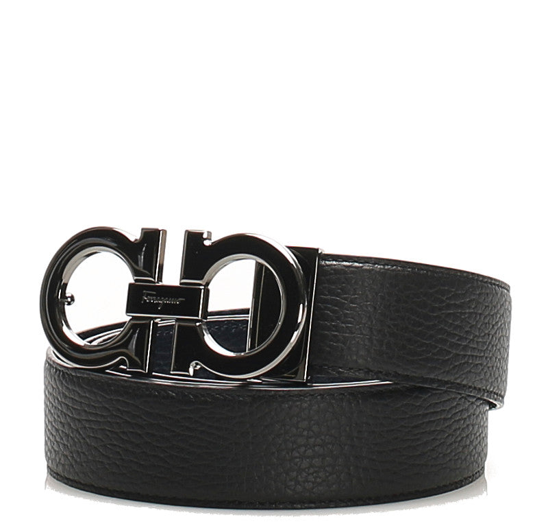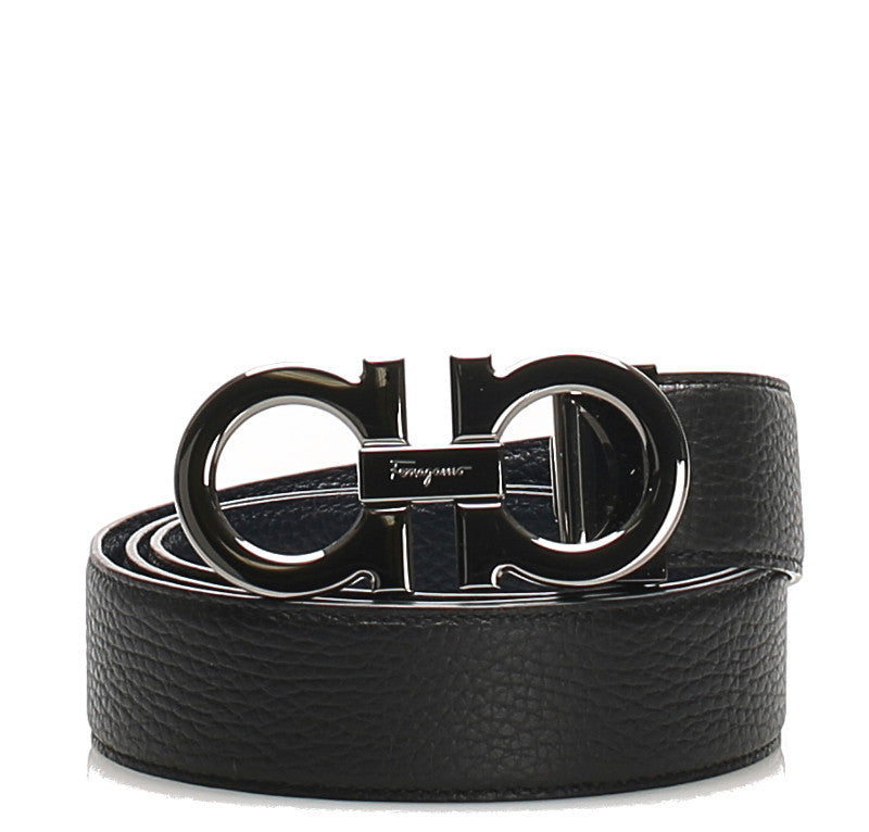 サルヴァトーレフェラガモ ガンチーニ ブラック シルバー レザー ベルト メンズ Salvatore Ferragamo 中古