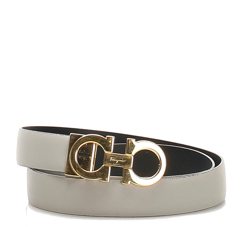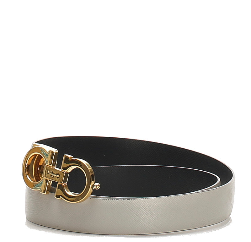 サルヴァトーレフェラガモ ガンチーニ グレー ゴールド レザー ベルト レディース Salvatore Ferragamo 中古