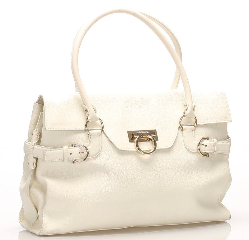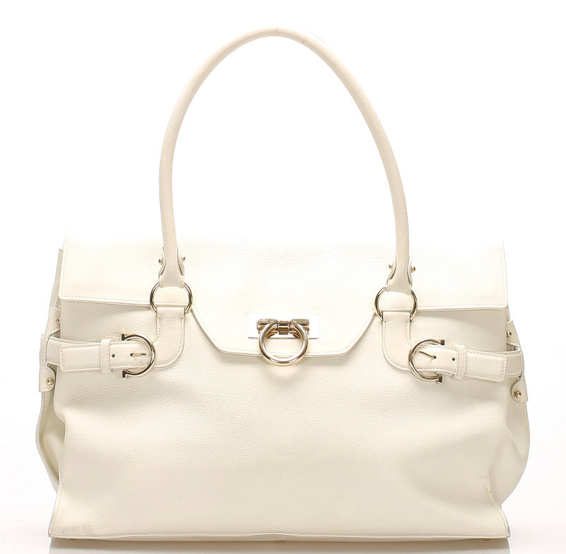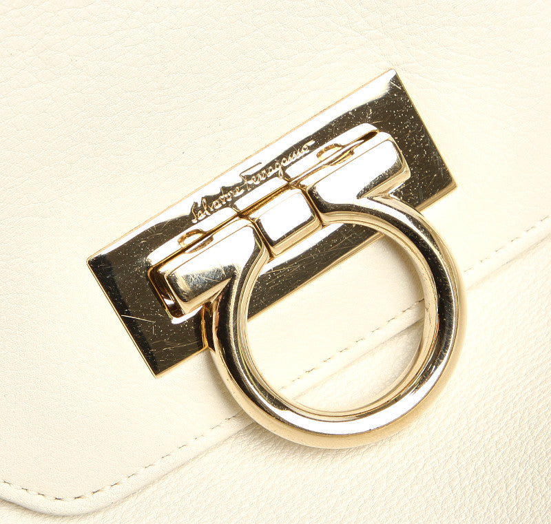 サルヴァトーレフェラガモ ガンチーニ AU-21 5354 ホワイト 白 レザー トートバッグ レディース Salvatore Ferragamo 中古