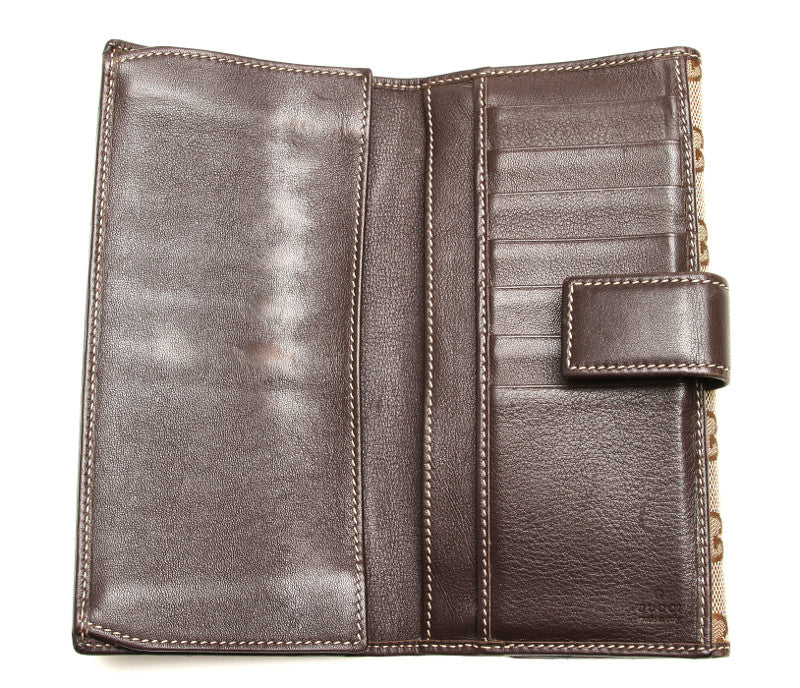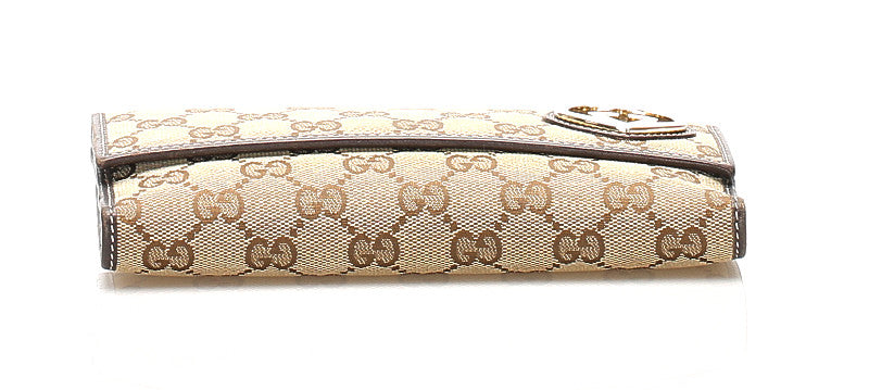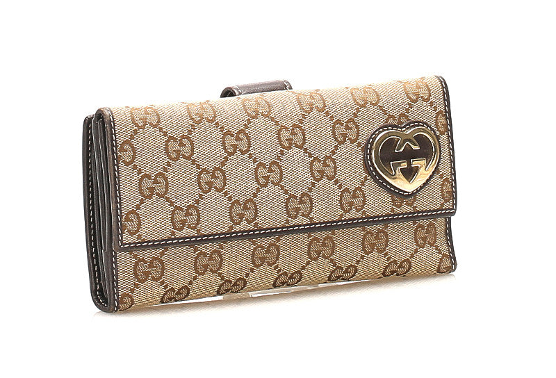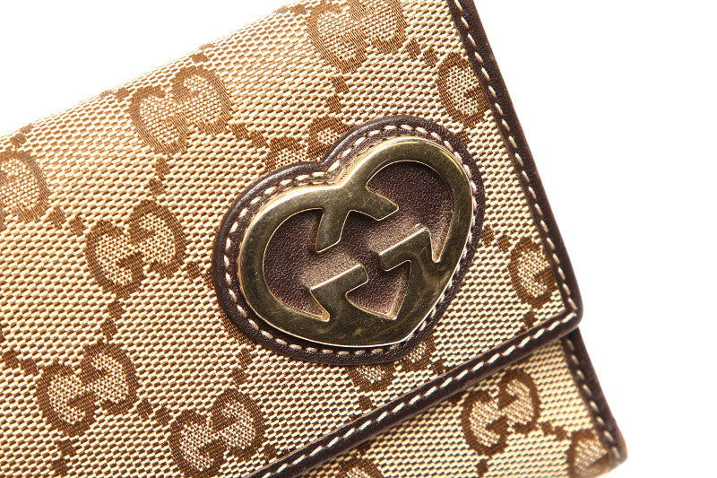 グッチ ラブリー ハート GGキャンバス ベージュ ブラウン キャンバス レザー 長財布 レディース GUCCI 中古
