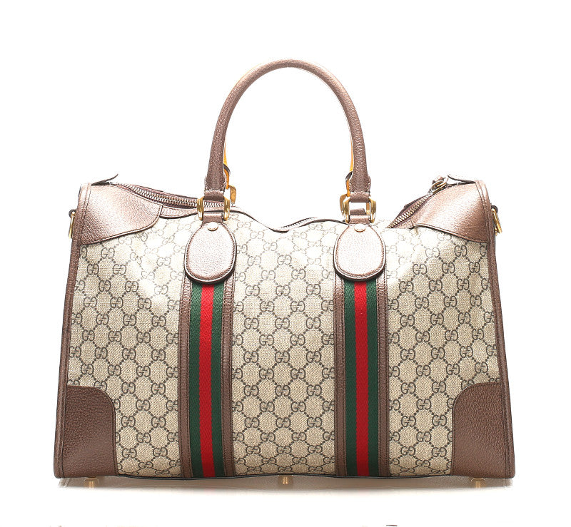 グッチ GGスプリーム タイガー 480500 ブラウン イエロー PVC レザー ハンドバッグ レディース GUCCI 中古