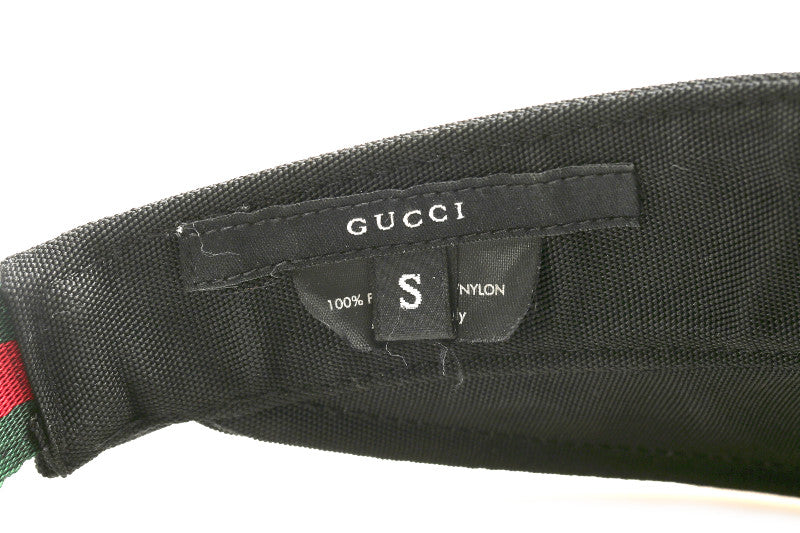 グッチ シェリーライン ブラック 黒 ナイロン サンバイザー レディース GUCCI 中古