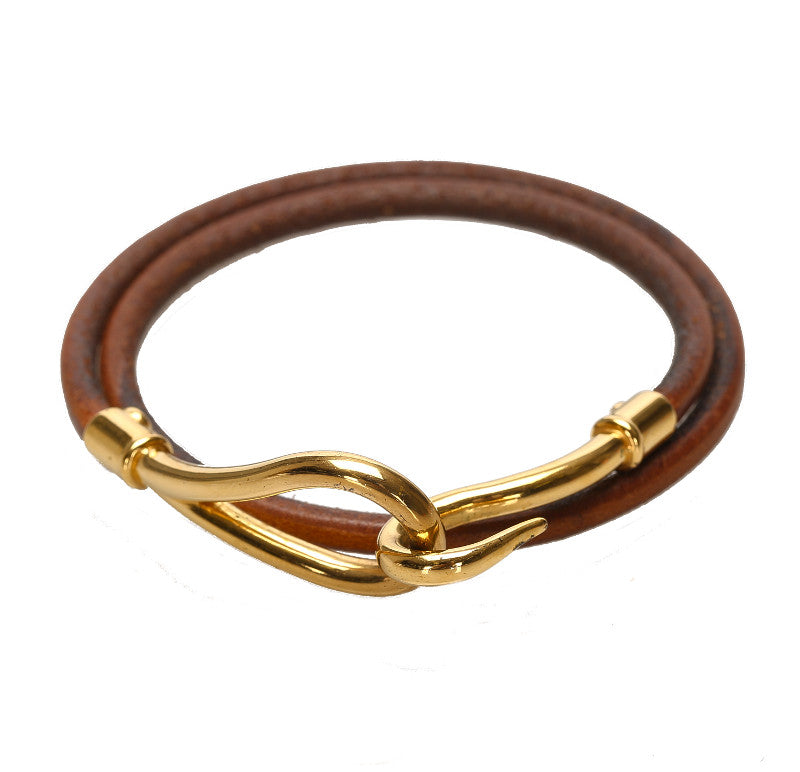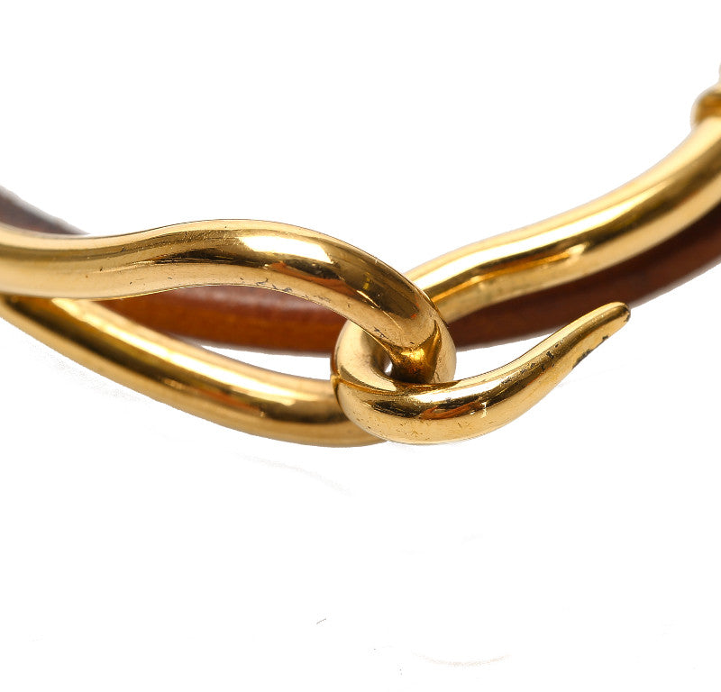 エルメス ブラウン レザー メッキ ブレスレット レディース HERMES 中古