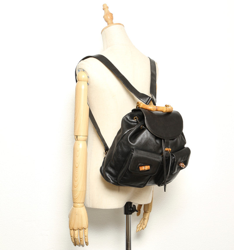 グッチ バンブー 003・2058 ブラック レザー リュック バックパック レディース GUCCI 中古