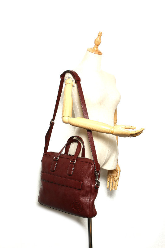 グッチ インターロッキングG 322057 ボルドー レザー ビジネスバッグ メンズ GUCCI 中古