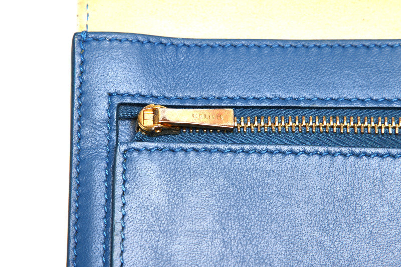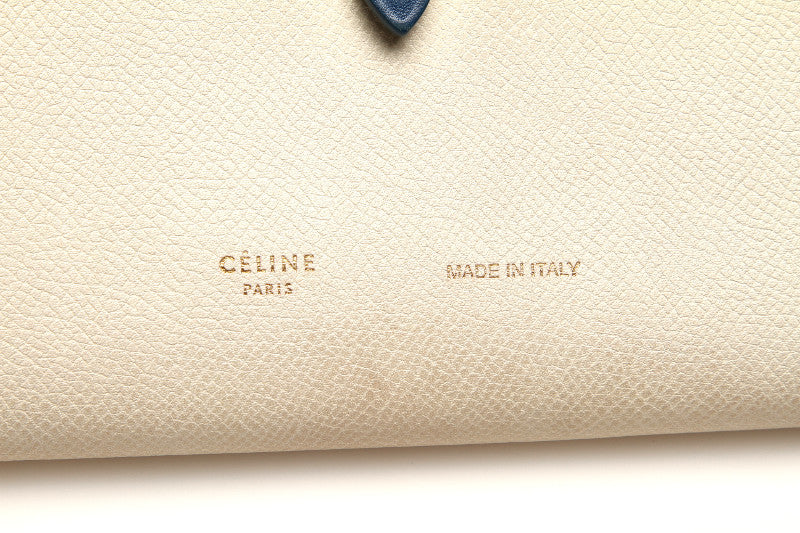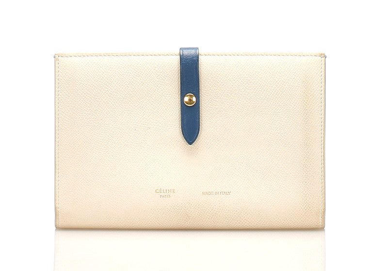 セリーヌ ホワイト ブルー レザー 二つ折り財布 ユニセックス CELINE 中古