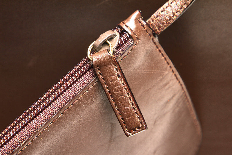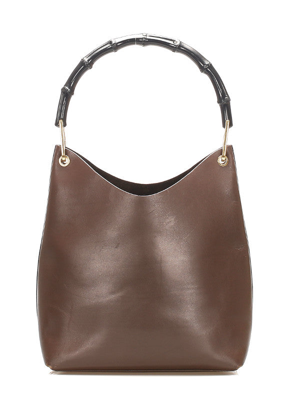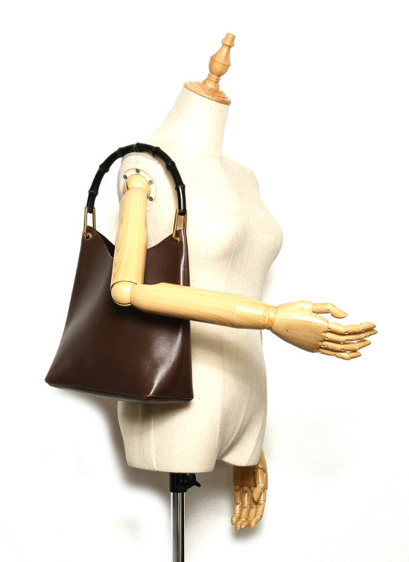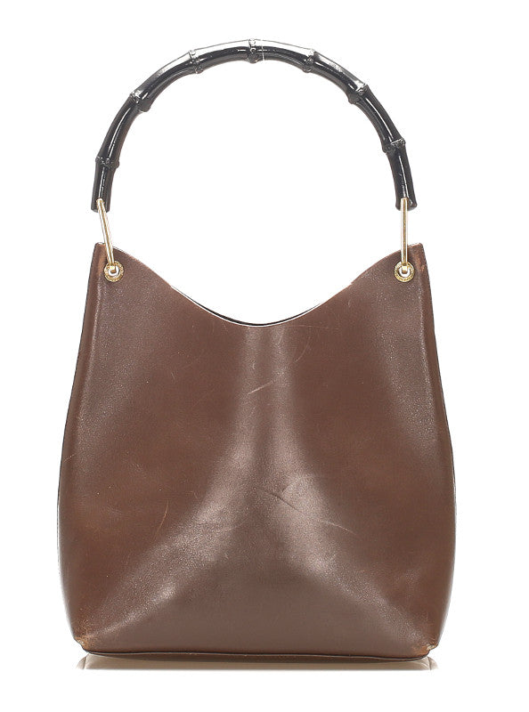 グッチ ウッドハンドル 001・1553 ブラウン レザー ハンドバッグ レディース GUCCI 中古