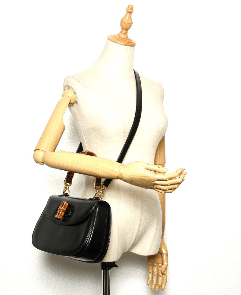 グッチ バンブー 000・1227 ブラック 黒 レザー ハンドバッグ ショルダーバッグ 2WAY レディース GUCCI 中古