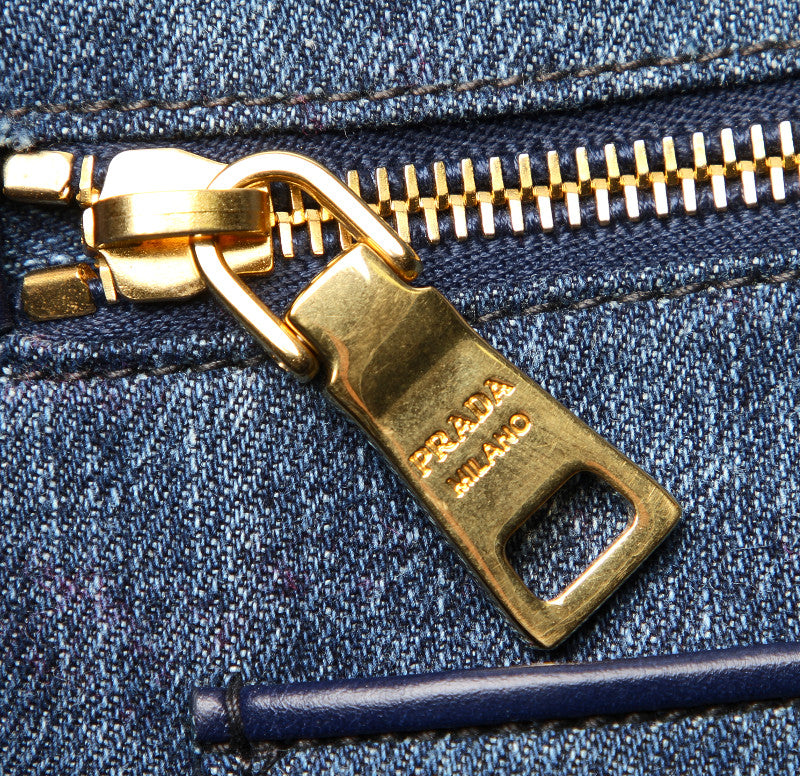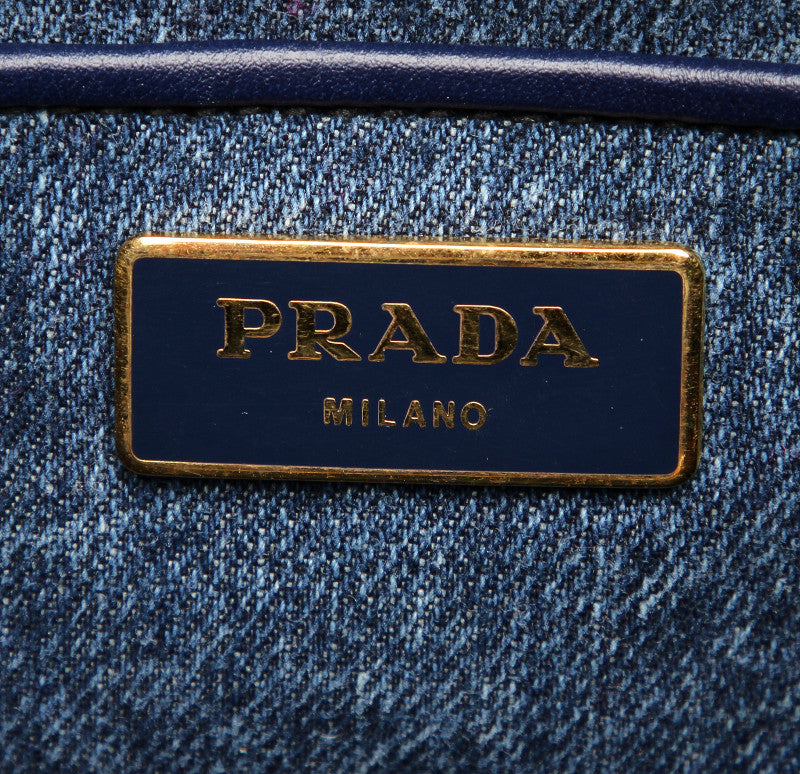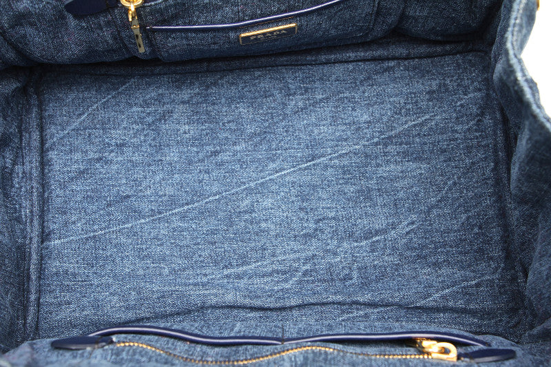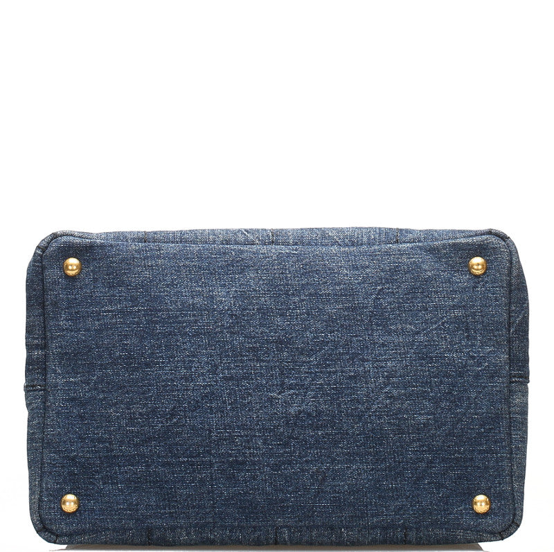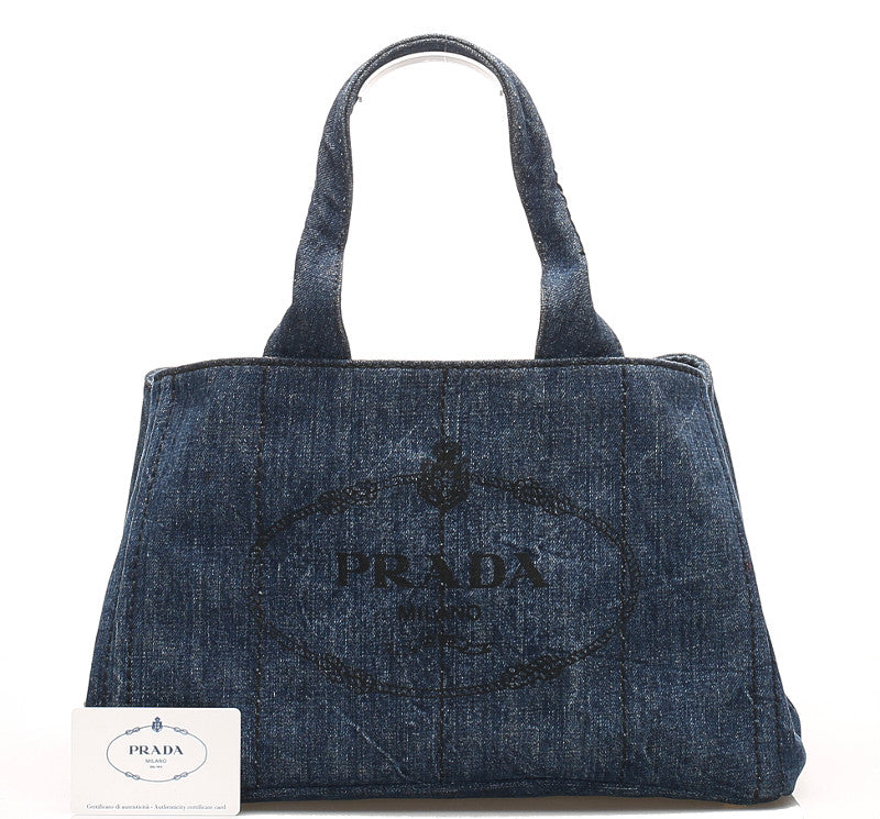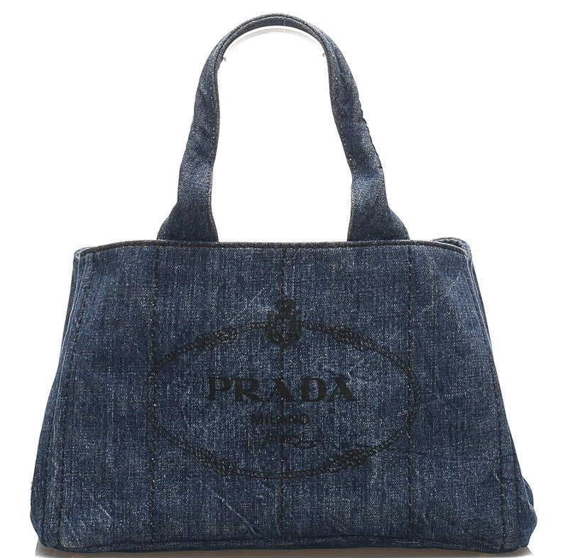 プラダ カナパ B1877B ブルー デニム ハンドバッグ レディース PRADA 中古