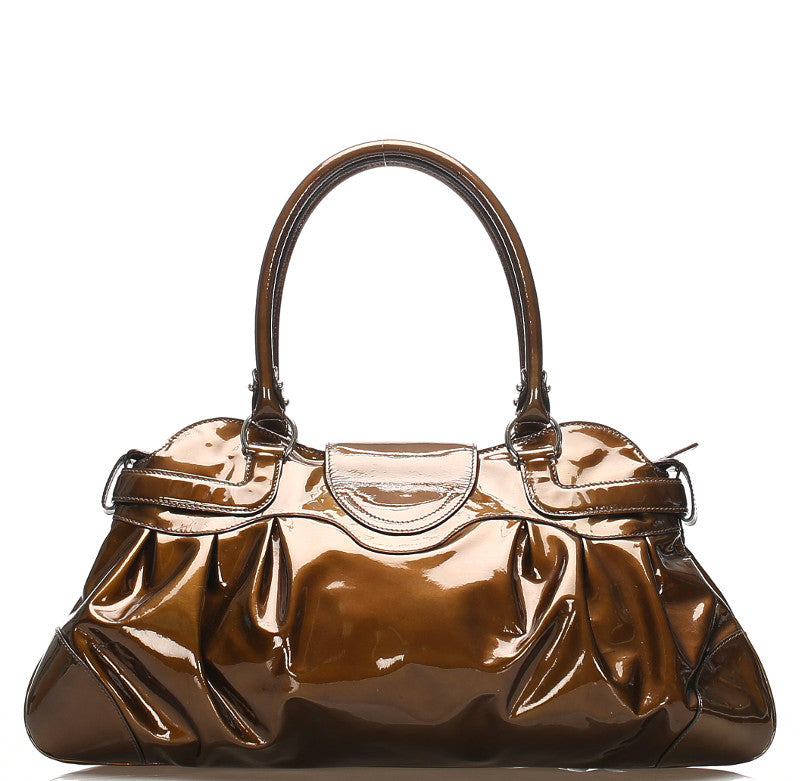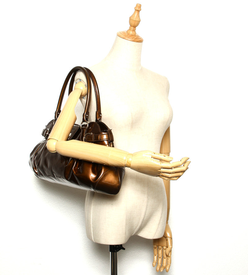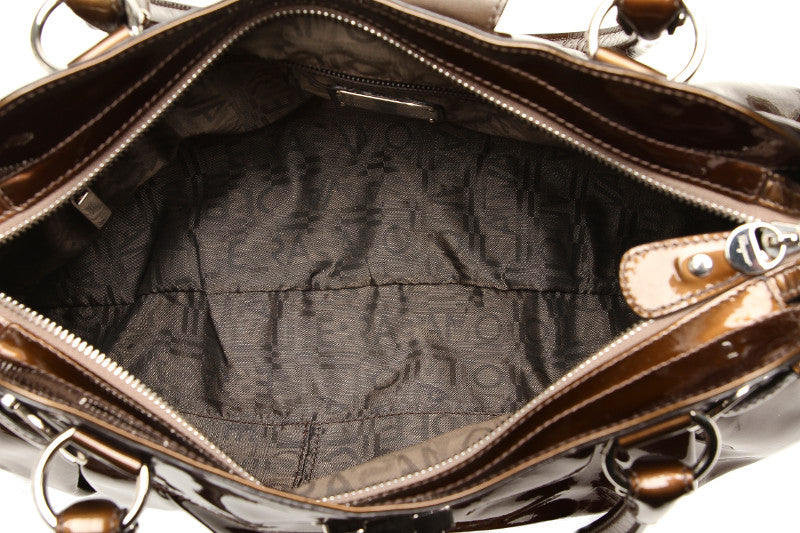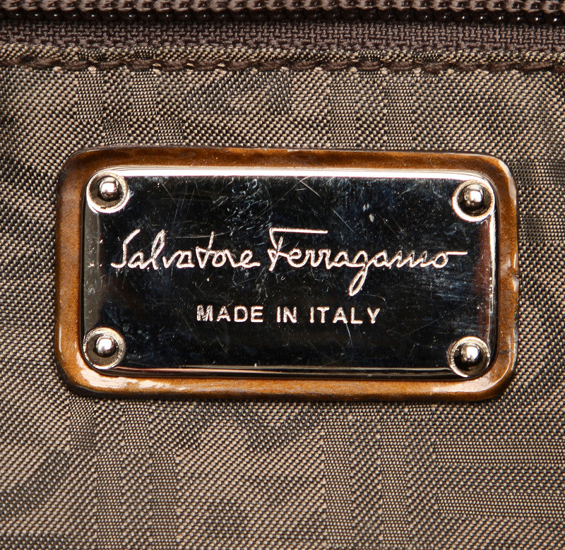 サルヴァトーレフェラガモ ガンチーニ AB-21 5370 グリーン 緑 エナメル ハンドバッグ レディース Salvatore Ferragamo 中古