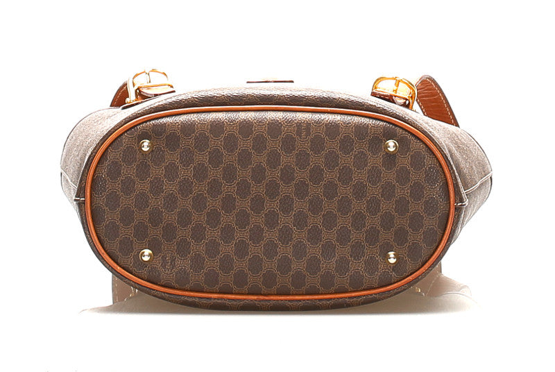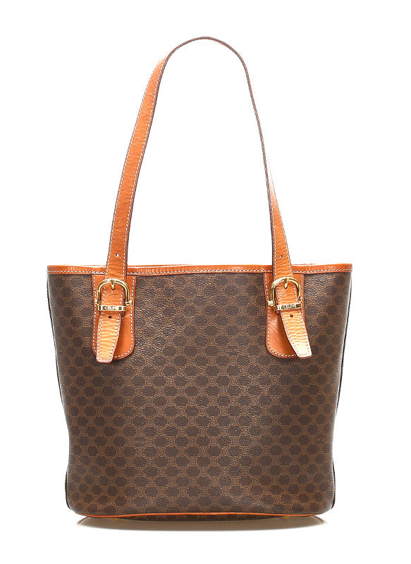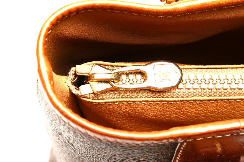 セリーヌ マカダム ブラウン PVC レザー トートバッグ レディース CELINE 中古