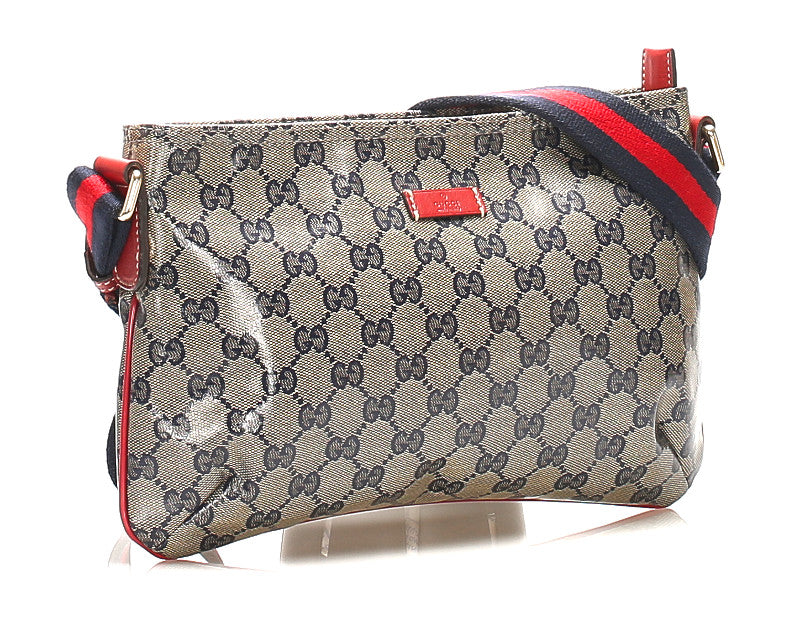グッチ シェリー GGクリスタル グレー PVCコーティングキャンバス ショルダーバッグ レディース GUCCI 中古