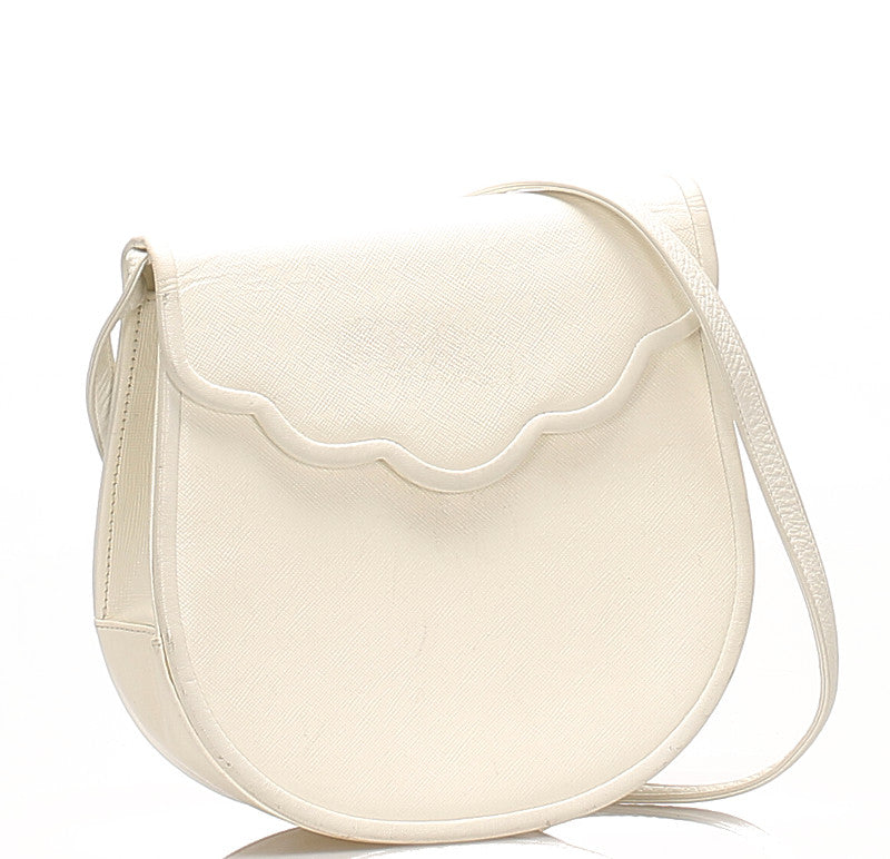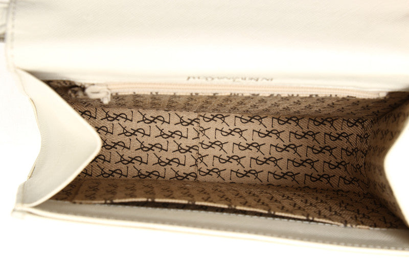 イヴ サンローラン ホワイト レザー 斜め掛け ショルダーバッグ レディース YVES SAINT LAURENT 中古