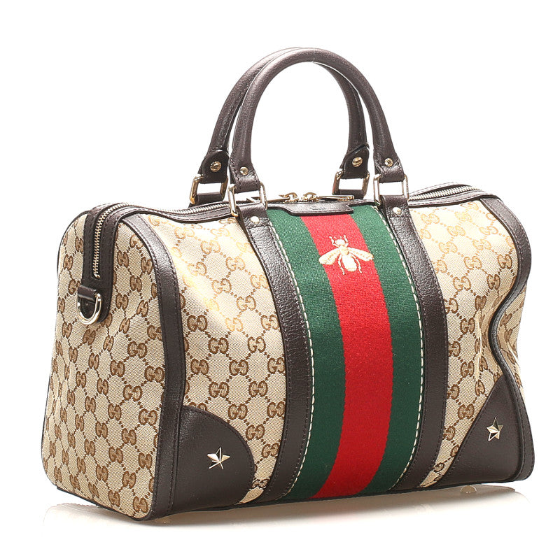グッチ シェリーライン GGキャンバス 406868 ブラウン 茶 キャンバス ボストンバッグ レディース GUCCI 中古
